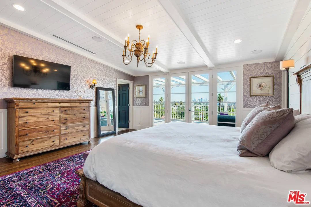 Completely remodeled in 2017, this Los Feliz estate exudes beauty & sophistication, from the wide-gated entry to the non-stop city views. High ceilings, French doors, hardwood floors, & wainscoting set a tone of chic elegance. The stately foyer flows into the living room & formal dining room, each w/bay window seats. The impressive gourmet kitchen w/spacious dining area adjoins the family room, flanked by a wall of windows & French doors to a view balcony. A gorgeous floating staircase ascends to the upper level where the majestic owner's suite, w/large closet, luxurious bath, & private pergola-shaded deck providing endless views of downtown L.A. Two additional en-suite bdrms complete this level. The lower level has two more en-suite bdrms. The beautifully landscaped back yard features a covered patio, fire pit, dining area, BBQ island, & pool/spa. Walking distance to great restaurants, entertainment, shopping, Greek Theater, Griffith Park Observatory w/hiking trails & other amenities.